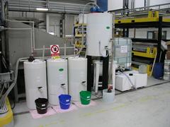 The wastewater that is continuously released from the production plant is homogenized in an accumulation plant, where it is stirred with a slow-speed stirrer and pumped via a pipe mixer to a coagulation-sedimentation reactor. After homogenization, the wastewater always has approximately the same pollution quality.